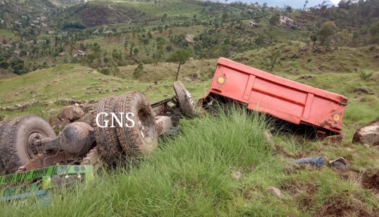 Official sources told GNS that the tipper (JK12B-1569) on way from Mendhar to Poonch rolled down into a gorge on reaching near Nabna Major Morh Salnai, leading to on spot death of a 28-year-old person, Javid Ahmed son of Mohammad Rafiq of Dara Dullian Haveli Poonch, and injuries to another person Afraz Ahmed (driver of the vehicle) son of Jahanger Khan of Piallian. He was shifted in serious condition to District Hospital Poonch where succumbed to injuries.